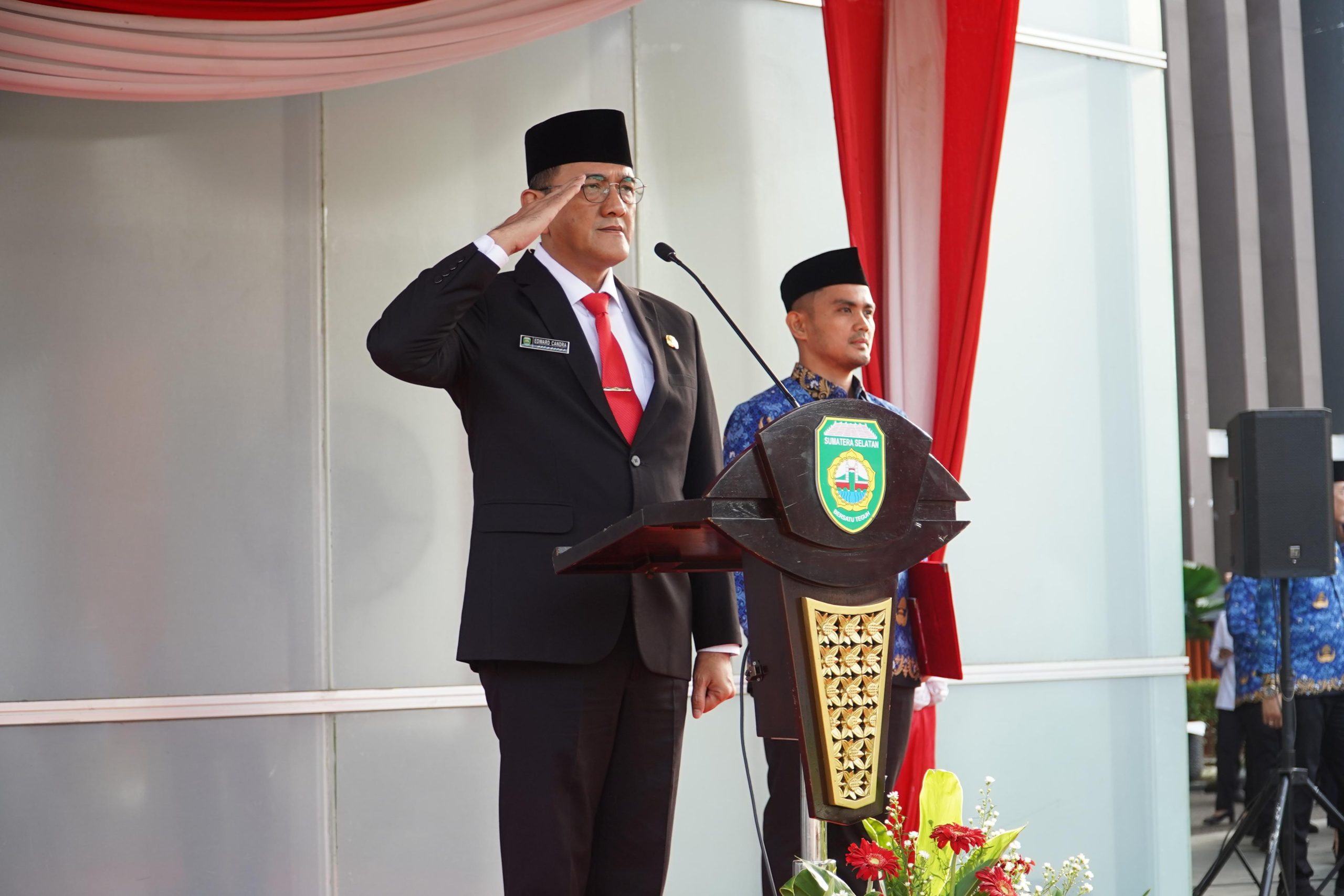 Pilar informasi.com, Palembang– Sekretaris Daerah (Sekda) Provinsi Sumatera Selatan (Sumsel) Drs H Edward Chandra MH, bertindak sebagai inspektur upacara (Irup) dalam peringatan Hari Lahir Pancasila yang digelar di halaman Kantor Gubernur Sumsel, Senin (2/6/2025) pagi.