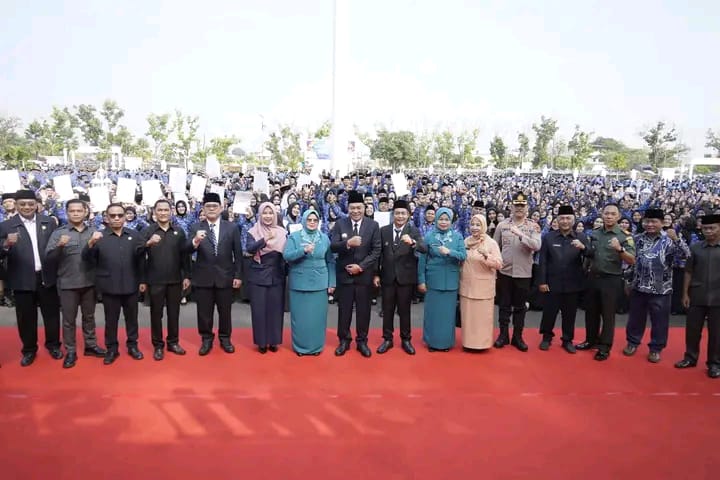 Pilarinfomasi.com MUBA – Bupati Muba HM Toha SH melantik dan mengambil sumpah sebanyak 2.838 Pegawai Pemerintah dengan Perjanjian Kerja (PPPK) dan 151 Calon Pegawai Negeri Sipil (CPNS) di lingkungan Pemkab Muba, Kamis (05/06/2025) Acara pelantikan tersebut berlangsung di Halaman Griya Bumi Serasan Sekate Rumah Dinas Bupati Muba.