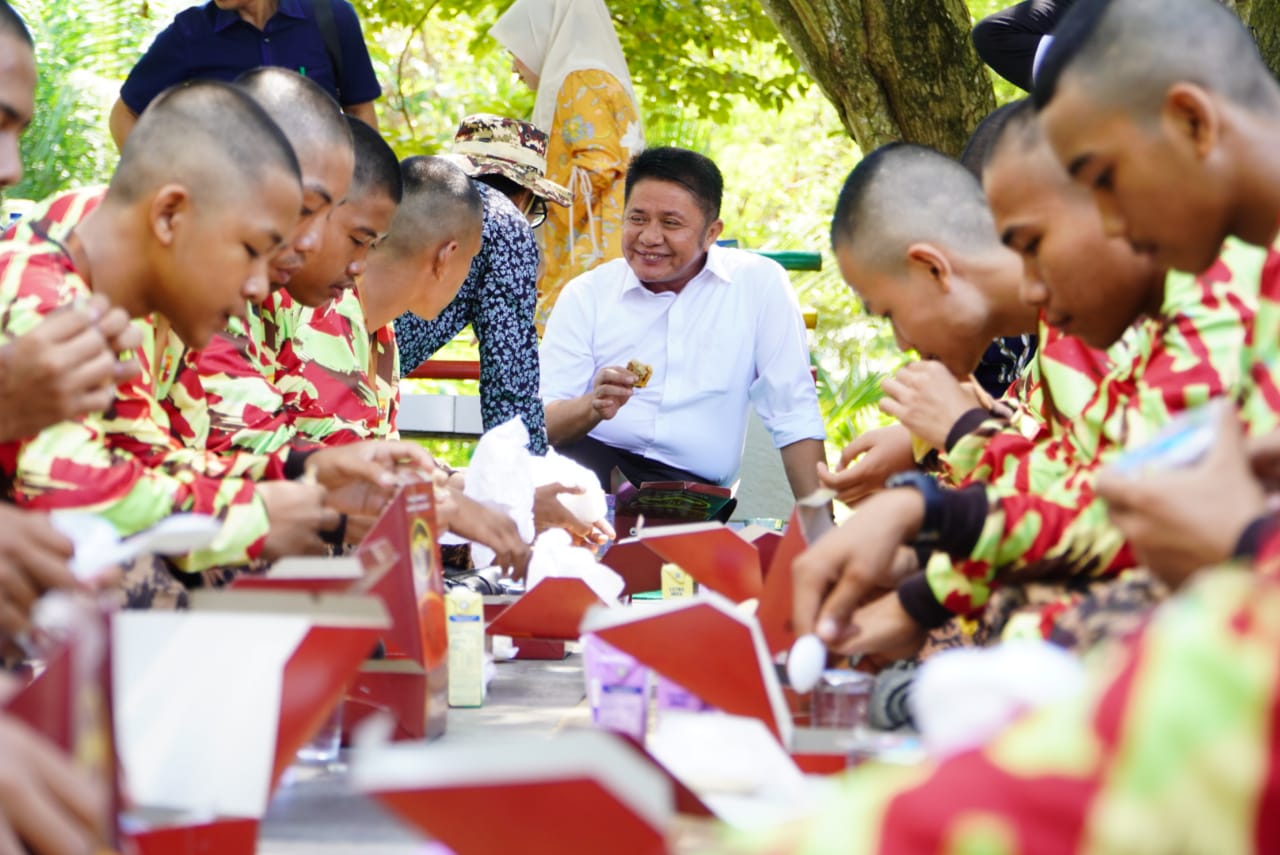 Kehadiran Gubernur dalam kegiatan tersebut disambut penuh antusias oleh para siswa dari berbagai sekolah yang sedang mengikuti retret. Para peserta yang duduk melingkar di bawah tenda besar tampak sumringah saat Herman Deru menghampiri mereka.