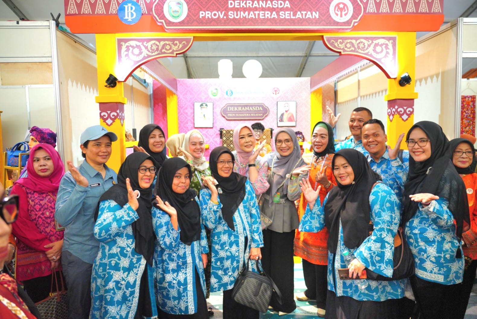Dalam kesempatan itu, Feby juga meninjau stan Dekranasda Provinsi Sumsel yang ikut serta dalam Expo Dekranasda. Ia tampil anggun dengan balutan kain tenun khas Palembang, Tajung dan Blongsong, berwarna merah muda. Stan Sumsel menampilkan produk unggulan seperti wastra, kriya, manik-manik, hingga olahan pangan khas. Keberadaan stan tersebut sukses menarik minat pengunjung dari berbagai daerah. (Rill/Ak)