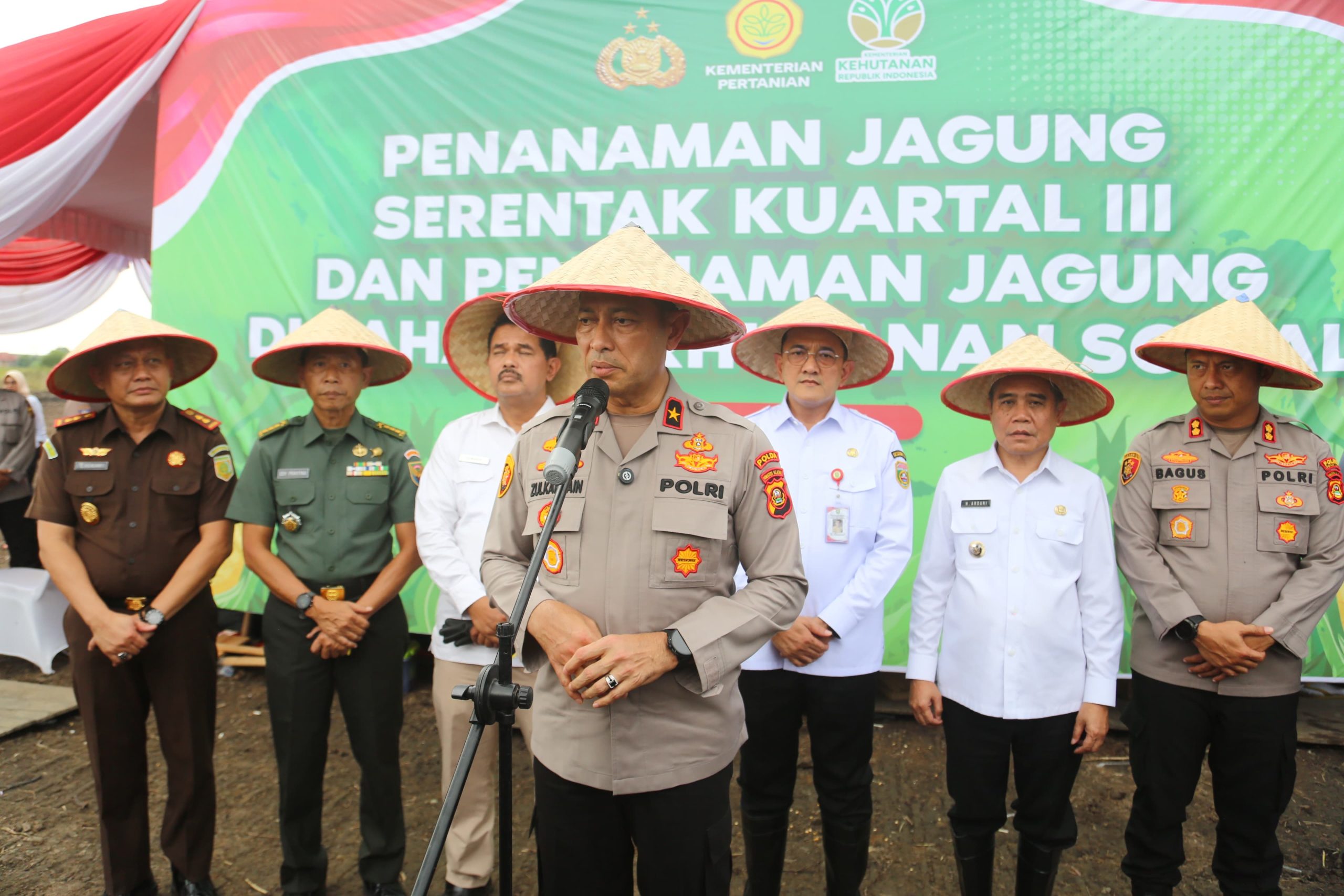 Dalam sambutannya, Sekda Edward Candra menyebut kegiatan tanam jagung ini menjadi bukti nyata kolaborasi antara petani, pemerintah pusat dan daerah, pihak swasta, serta jajaran kepolisian, khususnya Polda Sumsel dan Polres Ogan Ilir. Menurutnya, Sumsel memiliki potensi besar dalam pengembangan jagung sebagai komoditas unggulan tanaman pangan.
