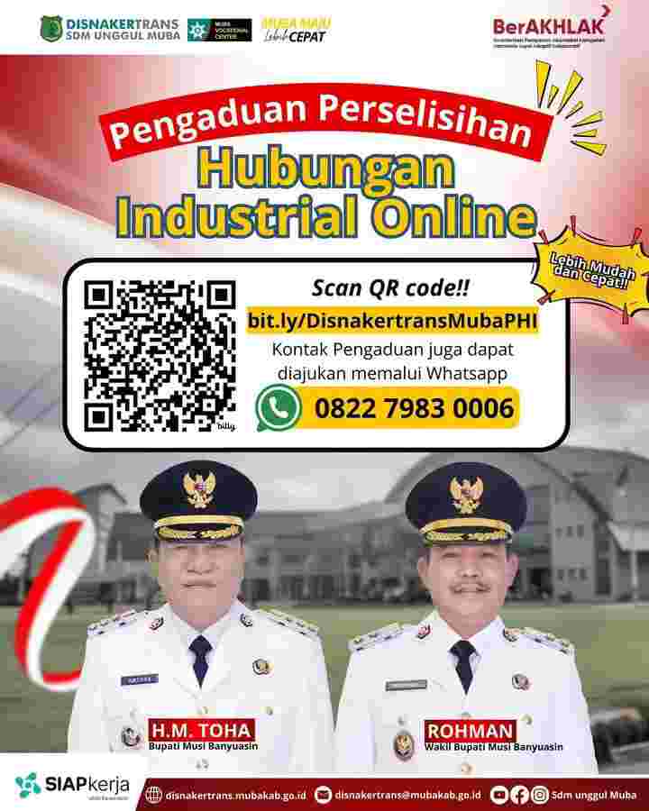 Pilarinfomasi.com MUBA – Dalam rangka merayakan Hari Ulang Tahun Kemerdekaan Republik Indonesia yang ke-80, Dinas Tenaga Kerja dan Transmigrasi (Disnakertrans) Musi Banyuasin (Muba) meluncurkan layanan pengaduan ketenagakerjaan yang inovatif. Layanan ini, yang dipimpin oleh Kadisnakertrans Muba, Herryandi Sinulingga, bertujuan memberikan solusi cepat, mudah, dan transparan bagi para pekerja.