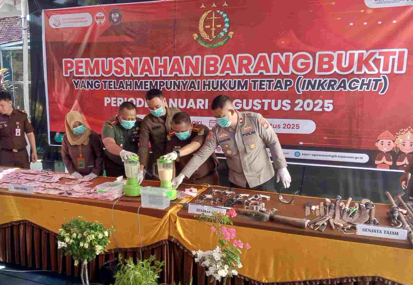 Kepala Kejaksaan Negeri Kabupaten OKI, H Sumantri, S.H., M.H, mengatakan pemusnahan barang bukti yang diadakan merupakan hasil sitaan dari tindak pidana yang mempunyai hukum tetap.
