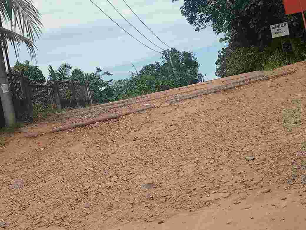“Nak hati-hati lewat di sini, karena pas di tanjakan ini beberapa meter dari pipa tidak dicor ataupun diaspal. Ditambah lagi ada pipa yang terlihat di atas permukaan tanah. Jadi kalau motor bisa terpeleset atau kecelakaan, apalagi saat musim hujan kondisi licin. Kalau mobil bisa nyangkut juga,” ujarnya, Senin (1/9/2025).