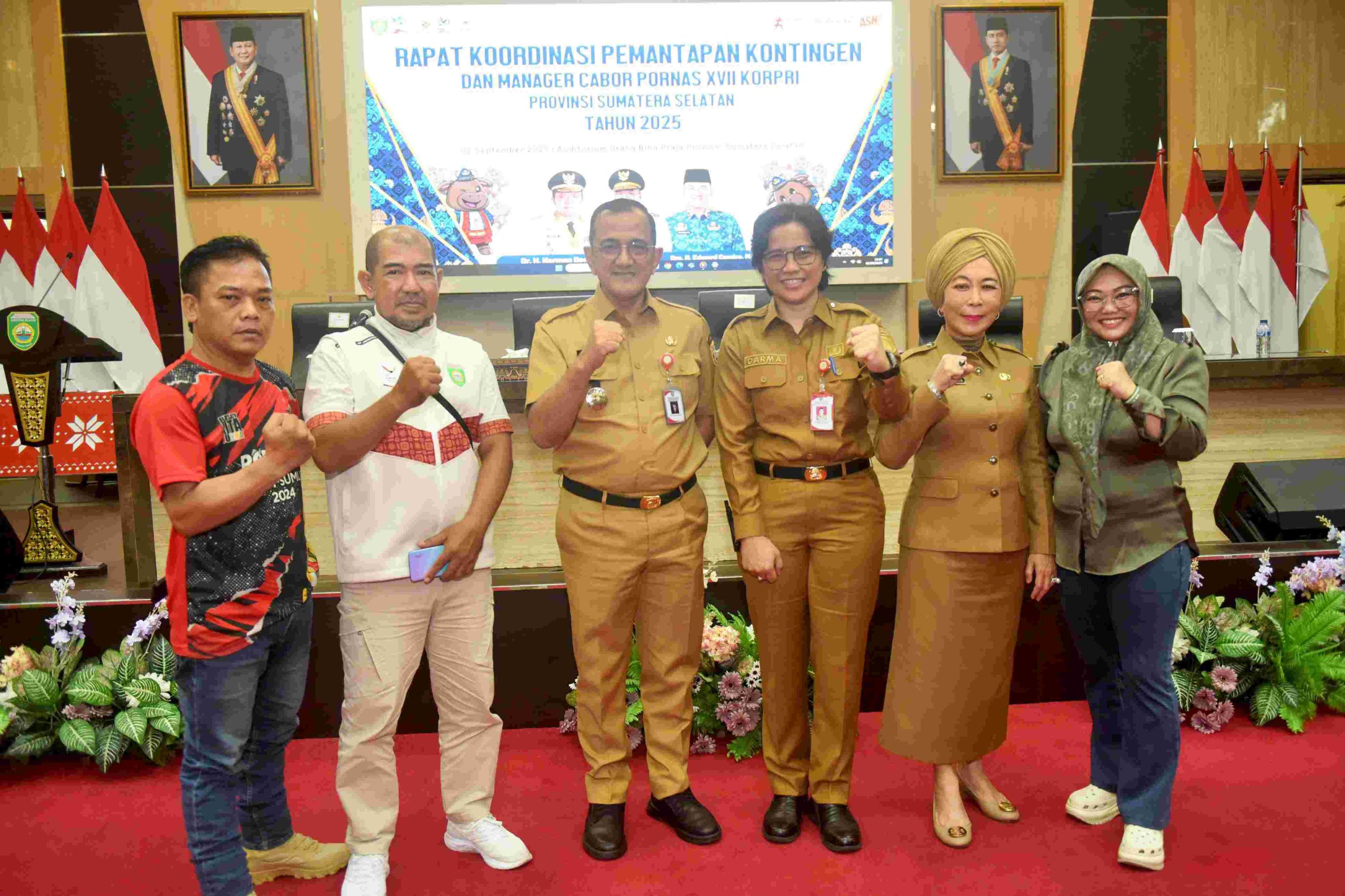 Pilar informasi.com PALEMBANG – Provinsi Sumatera Selatan (Sumsel) terus mematangkan persiapan sebagai tuan rumah Pekan Olahraga Nasional (Pornas) XVII Korps Pegawai Republik Indonesia (Korpri) Tahun 2025. Sekretaris Daerah (Sekda) Sumsel, Drs. H. Edward Candra MH, memimpin rapat koordinasi bersama kontingen dan manajer cabang olahraga (cabor) di Auditorium Graha Bina Praja, Selasa (2/9/2025).