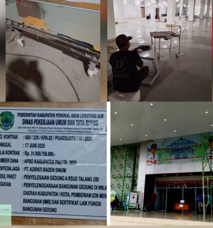 Pilarinformasi.com, PALI – Sorotan tajam publik terhadap pembangunan gedung RSUD Talang Ubi senilai Rp32 miliar yang dikerjakan PT A.R.S semakin menguat. Pasalnya, dugaan penggunaan aset rumah sakit oleh salah satu kontraktor baru ditanggapi Dinas PU setelah ramai diberitakan, bukan dari hasil pengawasan sejak awal.