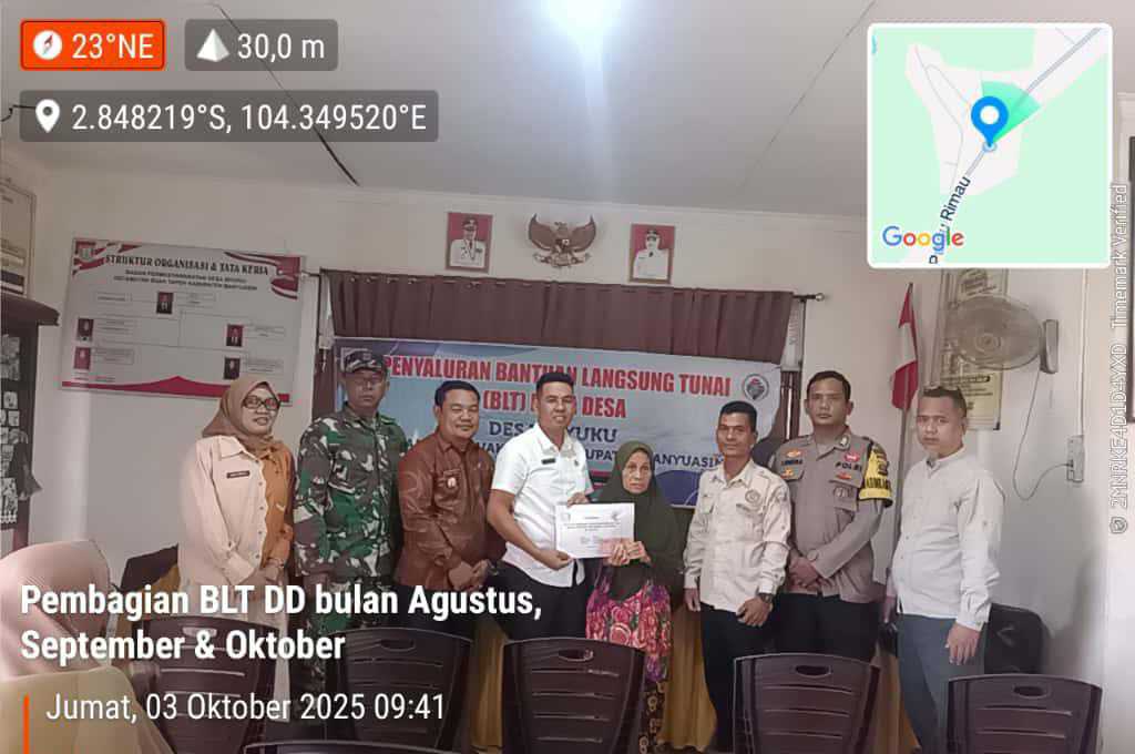 Bantuan Langsung Tunai (BLT) ini bersumber dari Dana Desa (DD) tahun 2025 tahap ke dua . Untuk warga masyarakat Desa yang hadir pembagian bantuan di berikan secara langsung .sedangkan bagi warga yang mendapatkan BLT ini ada yang sakit dan tidak bisa hadir maka di akan kunjungi ke rumah untuk diberikan Bantuan Lansung Tunai ( BLT) tersebut .( Tian)