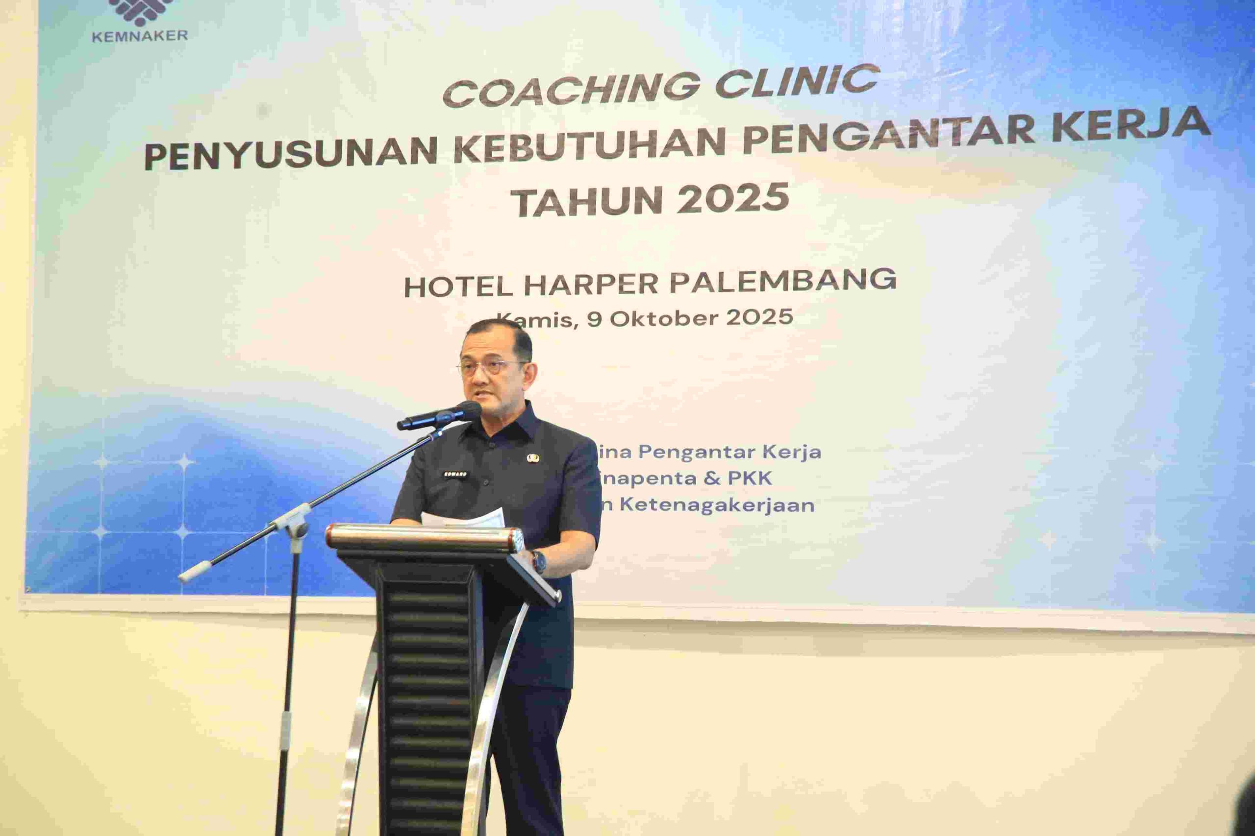 Pilar informasi.com PALEMBANG – Sekretaris Daerah (Sekda) Provinsi Sumatera Selatan, Drs H Edward Candra MH, secara resmi membuka Coaching Clinic Penyusunan Kebutuhan Pengantar Kerja di lingkungan Pemerintah Provinsi Sumsel, Kamis (9/10/2025). Kegiatan ini menjadi bagian dari upaya pemerintah daerah dalam memperkuat kapasitas aparatur, khususnya pejabat fungsional pengantar kerja di tingkat provinsi maupun kabupaten/kota.