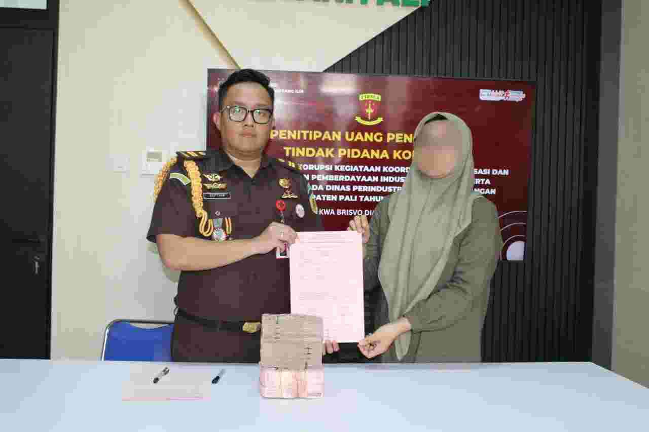 Penyerahan uang pengganti tersebut dilakukan pada Selasa, 28 Oktober 2025, di Ruang Media Center Kejari PALI. Uang diserahkan secara tunai oleh istri terdakwa berinisil BD kepada Jaksa Penuntut Umum (JPU) yang dipimpin oleh Kepala Seksi Tindak Pidana Khusus Kejari PALI, Enggi Elber, SH, MH.