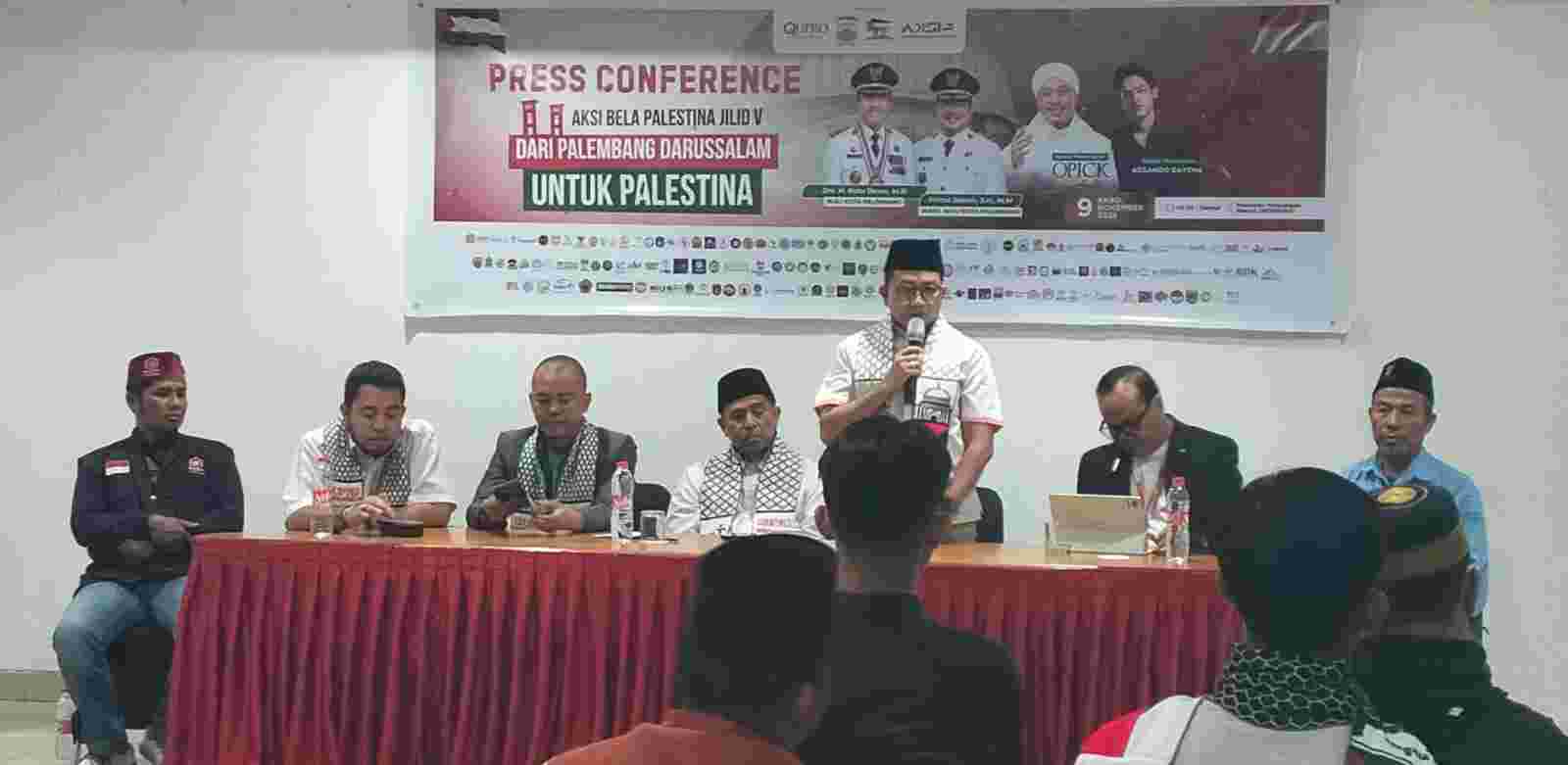 Pilar informasi.com PALEMBANG — Press Conference Aksi Bela Palestina Jilid V dari Palembang Darussalam untuk Palestina, Rabu (29/10/2025) Hotel Azza Palembang.