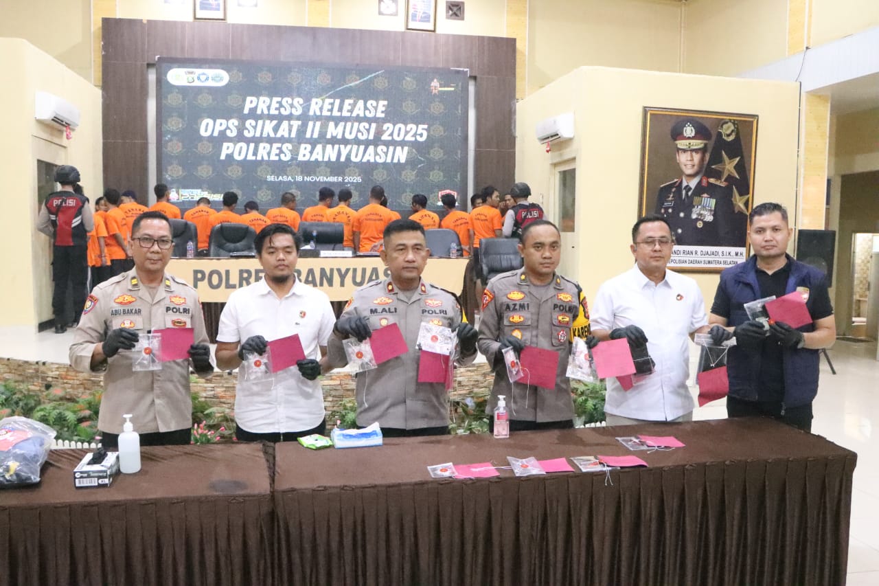 Pilarinformasi.com, Banyuasin– Polres Banyuasin berhasil mengungkap sejumlah kasus kejahatan dalam Operasi Sikat II Musi 2025 yang berlangsung selama 15 hari, dari 30 Oktober hingga 13 November 2025.