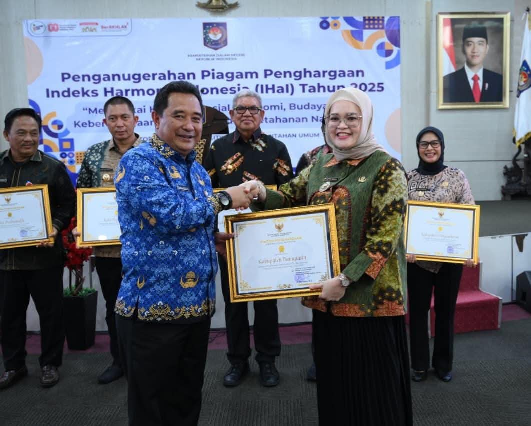 Pilarinformasi.com, Banyuasin — Kabupaten Banyuasin kembali mengukir Prestasi Gemilang dengan meraih Penghargaan Indeks Harmoni Indonesia (IHal) tahun 2025 diberikan oleh Kementerian Dalam Negeri (Kemendagri) kepada beberapa daerah yang berpartisipasi aktif dan memenuhi target pengukuran IHaI, indikator strategis yang menilai tingkat harmoni sosial, toleransi, dan kohesi masyarakat sebagai momentum reflektif untuk memperkuat komitmen bersama dalam menjaga stabilitas dan kerukunan nasional.