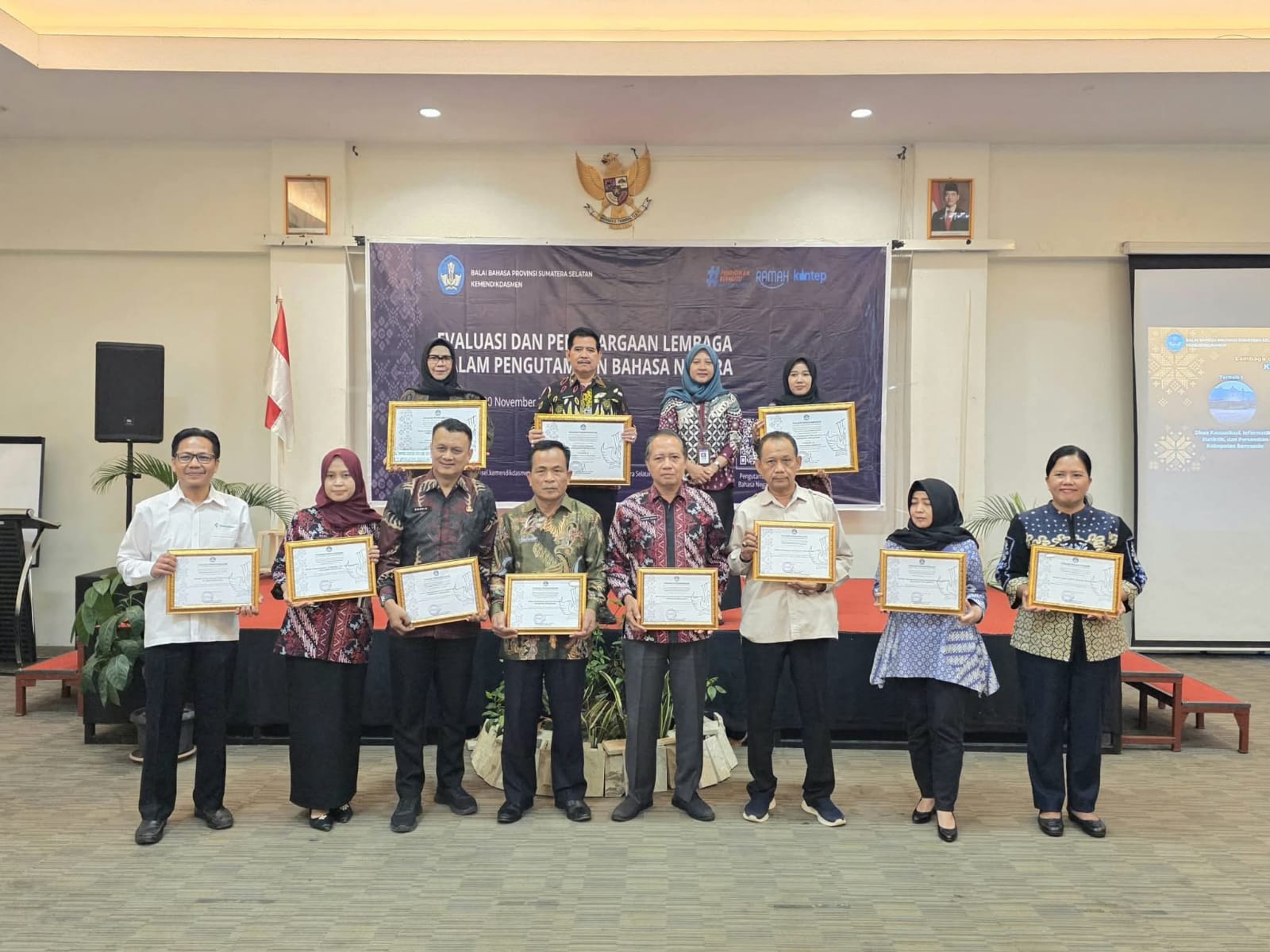Kegiatan ini diakhiri dengan pemberian Penghargaan kepada 50 Lembaga yang ada di Banyuasin oleh Balai Bahasa Provinsi Sumatera Selatan. (Tian)