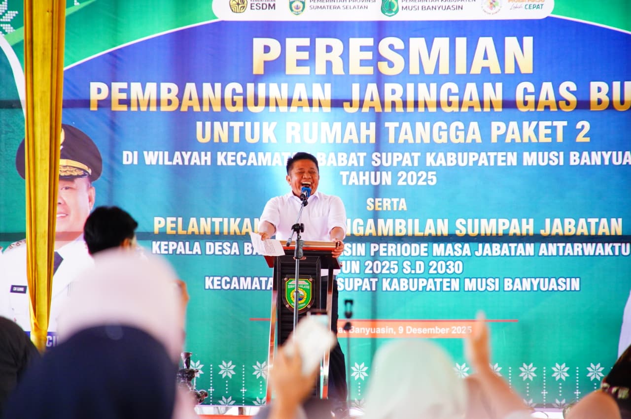 Dalam sambutannya, Herman Deru menyampaikan bahwa pembangunan jaringan gas bumi ini merupakan wujud sinergi antara Pemerintah Provinsi Sumatera Selatan, Pemerintah Kabupaten Muba, dan Kementerian ESDM dalam memberikan layanan energi murah bagi masyarakat.