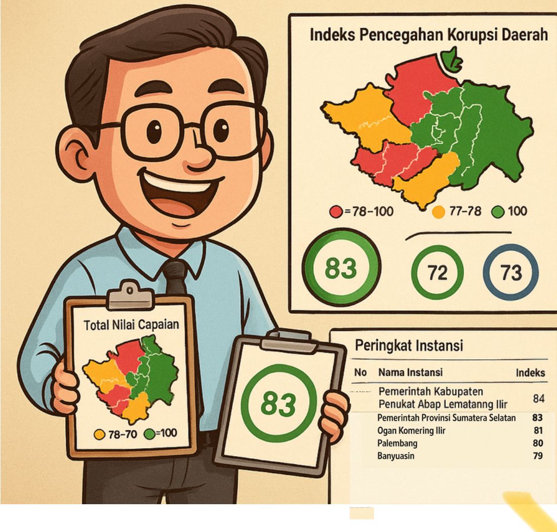 PALI- Pemerintah Kabupaten Penukal Abab Lematang Ilir (PALI) kembali menunjukkan capaian gemilang pada sektor tata kelola pemerintahan. Berdasarkan pembaruan data resmi Indeks Pencegahan Korupsi Daerah (MCP) 2025 yang dirilis melalui portal Jaga KPK pada (9/12/2025), Kabupaten PALI mencatatkan skor 83,9 dan menempati peringkat pertama di Provinsi Sumatera Selatan.