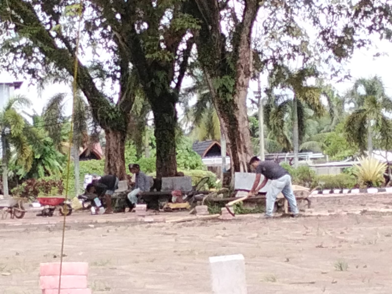 Ketua IWO Muba Soroti Minimnya Pengawasan Dispora, Pekerja Penataan halaman Stadion Serasan Sekate