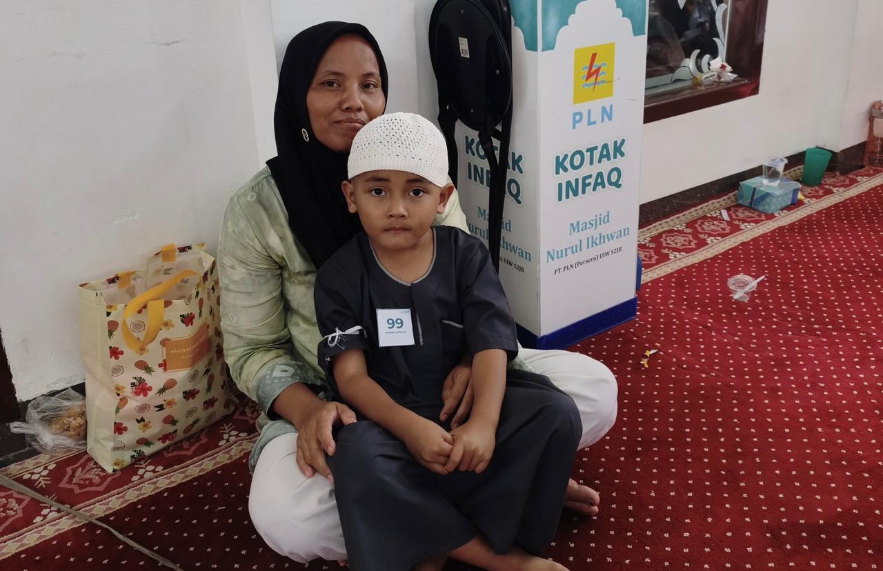 Nuraini warga KM.5 Palembang orang tua Attar Gibran yang berumur 5 tahun yang berkesempatan membawa anaknya untuk berkhitan pada program Khitan Sehat Anak Sholeh