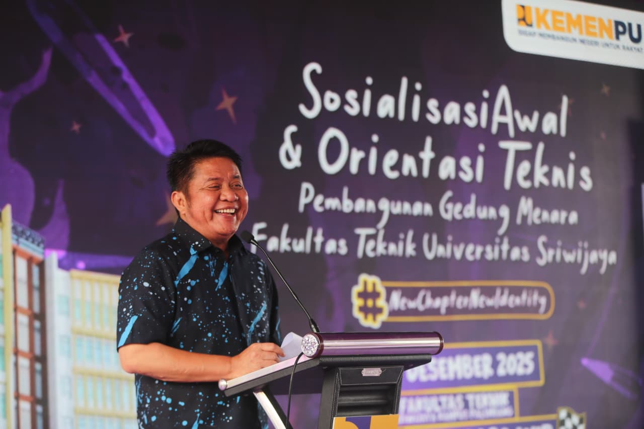 Hal tersebut disampaikannya saat menghadiri Sosialisasi Awal dan Orientasi Teknis Pembangunan Gedung Menara Fakultas Teknik Universitas Sriwijaya (UNSRI), Sabtu (27/12/2025).