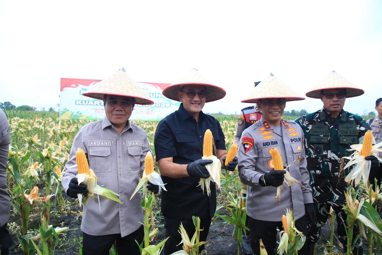 Adapun panen raya jagung serentak di wilayah hukum Polda Sumsel dipusatkan di Polres Ogan Ilir, tepatnya di Kecamatan Indralaya, Kamis (8/1/2026).