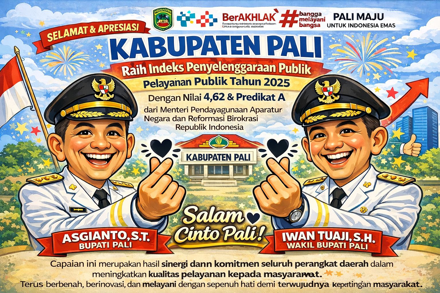 Dengan diraihnya predikat A pada Indeks Penyelenggaraan Pelayanan Publik Tahun 2025 ini, Pemerintah Kabupaten PALI berharap kepercayaan masyarakat terhadap pelayanan pemerintah daerah semakin meningkat. Ke depan, berbagai inovasi dan terobosan pelayanan akan terus dikembangkan guna mewujudkan pelayanan publik yang inklusif, berkeadilan, dan berkelanjutan demi kesejahteraan masyarakat Kabupaten PALI. (Ade)