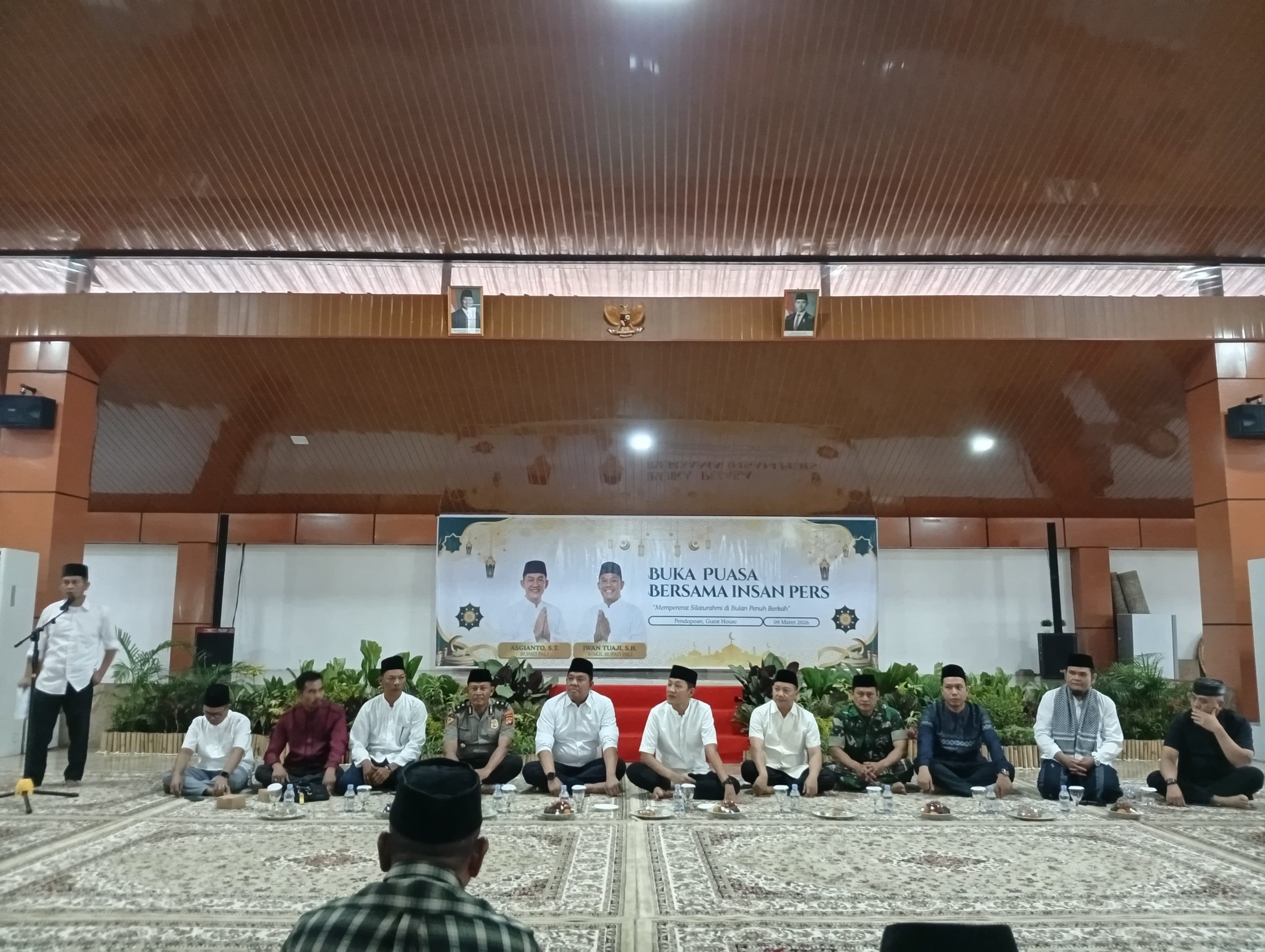 Pilarinformasi.com, PALI– Pemerintah Kabupaten PALI melalui Dinas Komunikasi dan Informatika (Diskominfo) menggelar buka puasa bersama dengan insan pers di Gouse House Bupati PALI, Senin (9/3/2026). Acara yang mengusung tema “Mempererat Silaturahmi di Bulan Penuh Berkah” ini dihadiri oleh Bupati PALI Asgianto, ST, Wakil Bupati Iwan Tuaji, SH, Forkopimda, Kepala OPD terkait, serta perwakilan organisasi media cetak, elektronik, dan online yang bertugas di Kabupaten PALI.