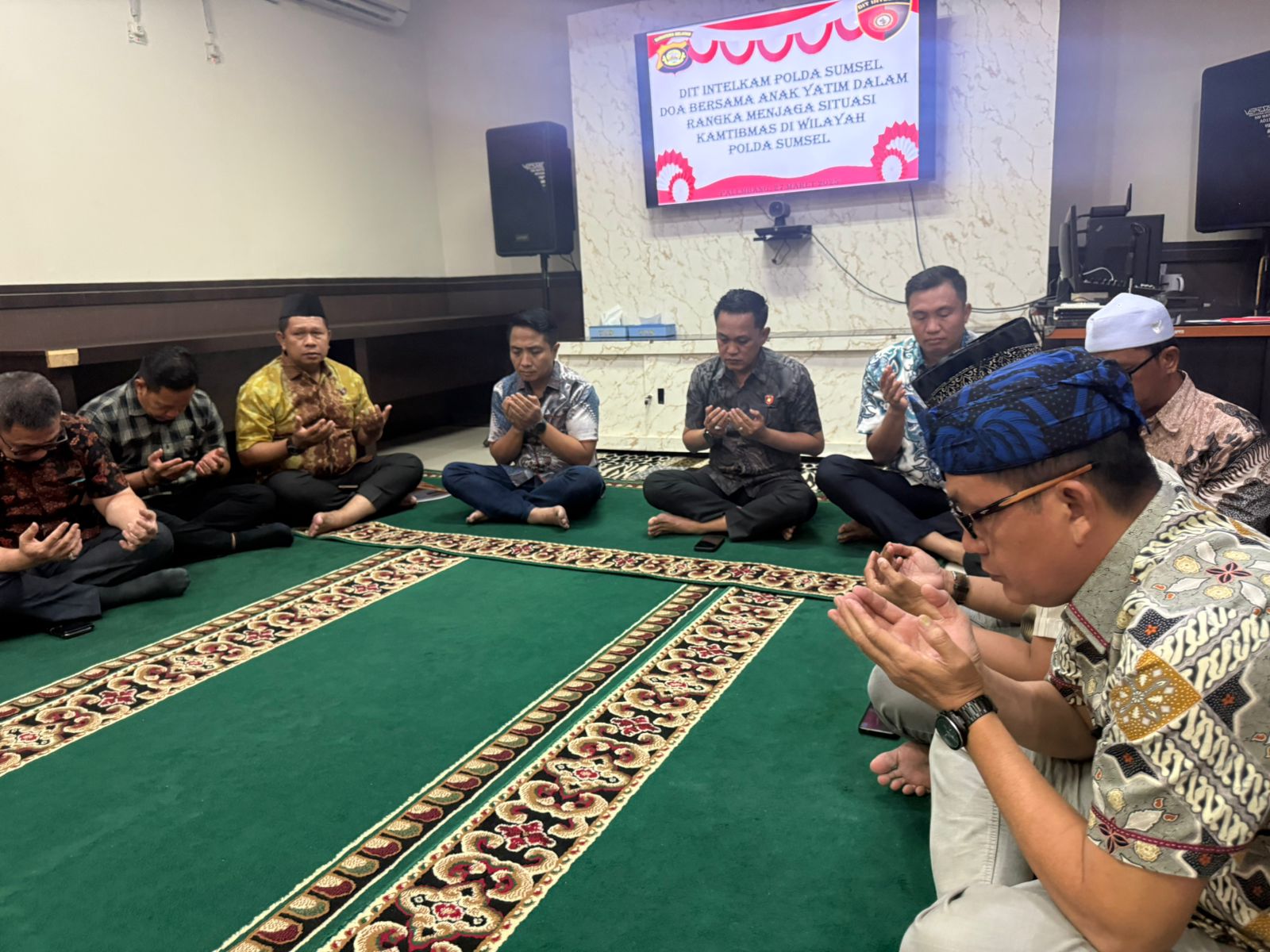 Kegiatan tersebut berlangsung pada Jumat (27/3/2026) pagi di ruang data lantai 3 Dit Intelkam Polda Sumsel. Doa bersama ini melibatkan anak-anak dari Yayasan Mahabatul Umi, serta jajaran pejabat utama di lingkungan Dit Intelkam.